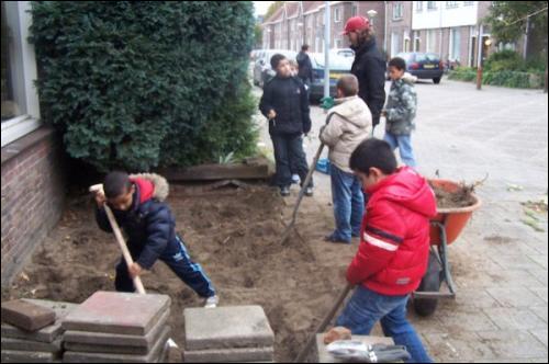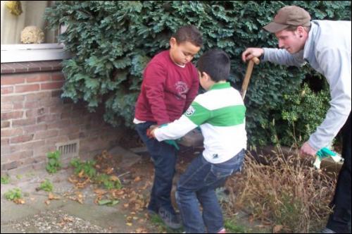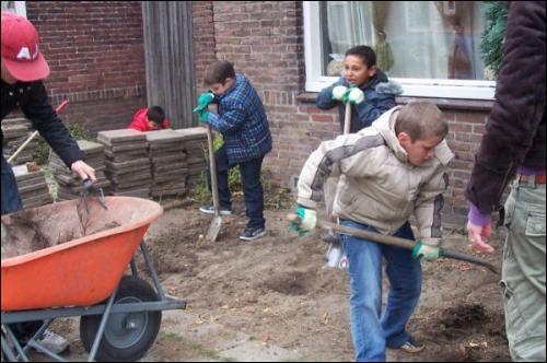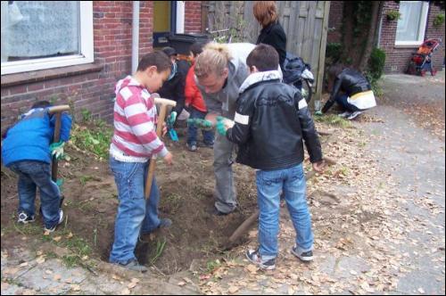 Zowel de aanleg als ook het onderhoud zal een jaar lang door de kinderen verzorgd worden. Op donderdag 7 oktober is er bij Bekkers Hoveniers eerst een workshop gegeven voor de kinderen die de voortuintjes gaan aanleggen. Op 12 oktober zijn de kinderen enthousiast begonnen aan hun natuurproject. Zie hieronder wat foto's van de start.